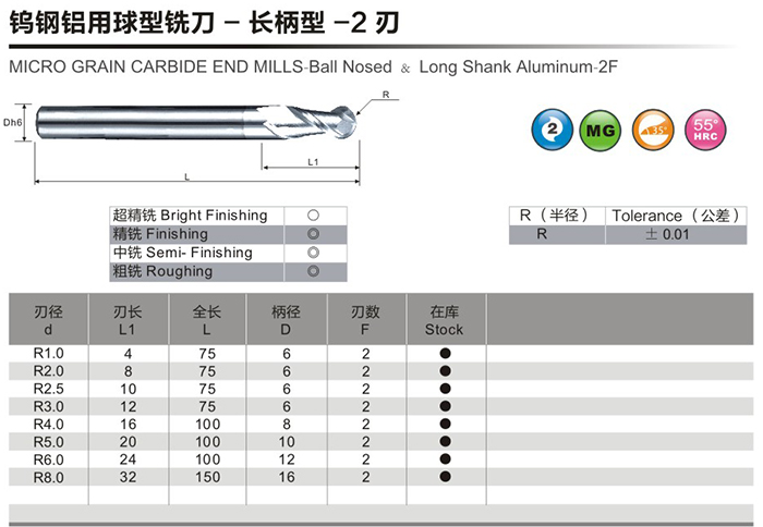 鎢鋼鋁用平銑刀-長(zhǎng)柄型-2刃